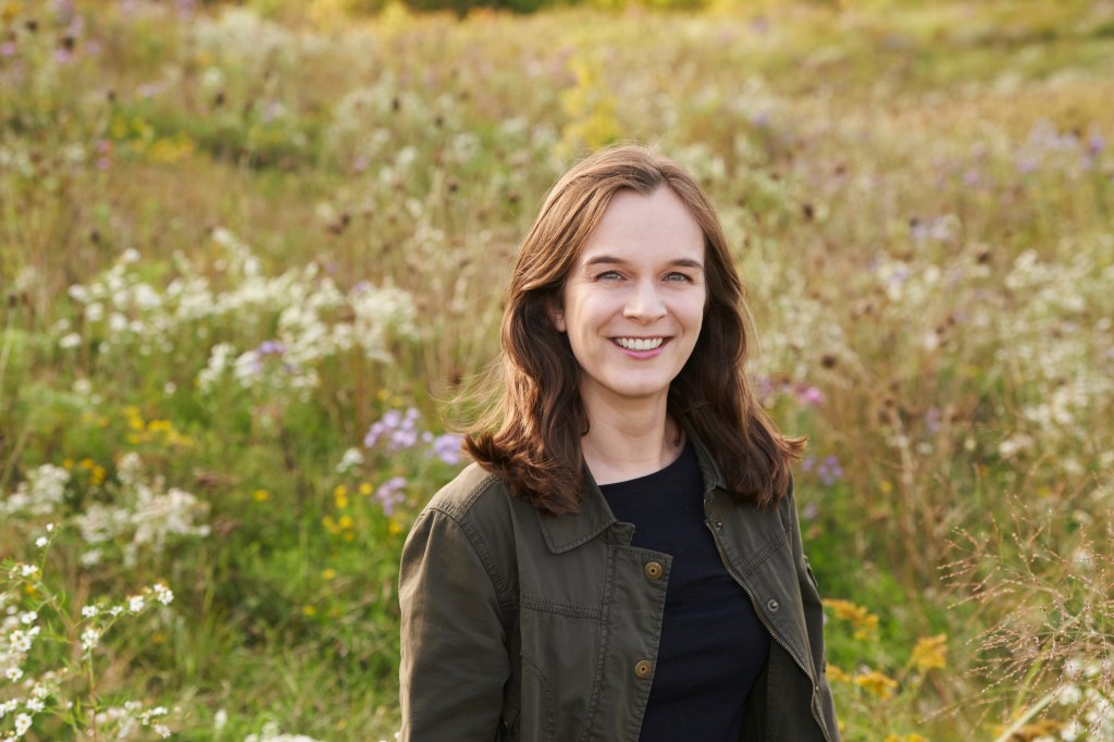 During most writing sessions, her black cat sits atop her lap while she fervently taps away at her keyboard; she very much enjoys having a writing partner who can meow.